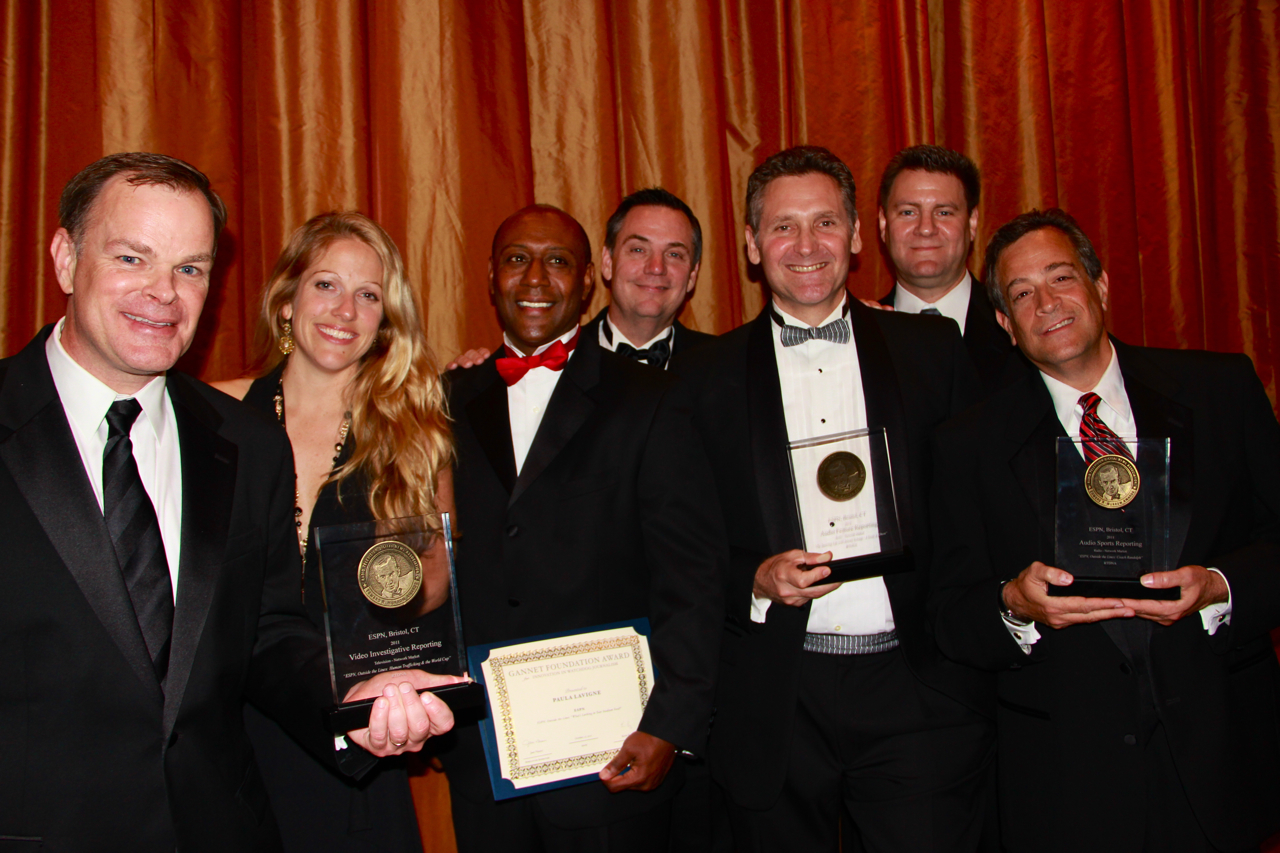 Additionally, OTL and Enterprise Unit reporter Paula Lavigne was presented with the Gannett Foundation Award for Innovation in Watchdog Journalism for her July 2010 story about food at sports facilities in North America called, “What’s Lurking in Your Stadium Food?” The piece was produced by Lindsay Rovegno and designed on ESPN.com by Derrick Pina.
