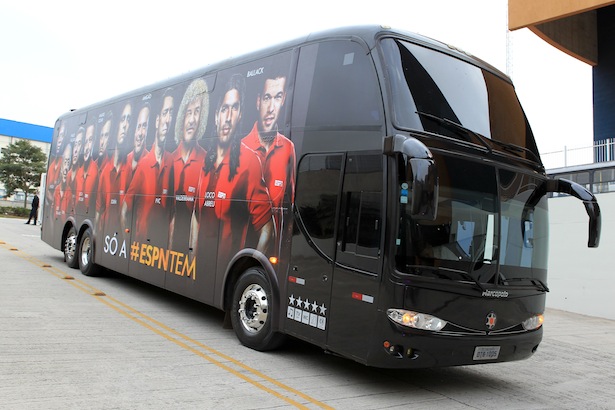 “The idea behind the spot was the exact moment when the buses arrive at the stadium and the players come down to the roaring fans that are excited to see their favorite team. We wanted to reenact that moment making the ESPN team – the narrators, reporters and commentators – come down from the bus en route to their ‘big match’: The World Cup,” said Ariane Landim, senior Marketing Manager for ESPN Brasil.