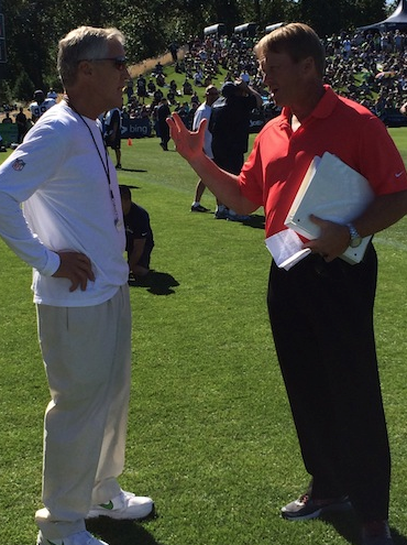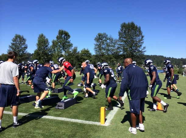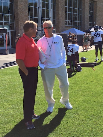 This afternoon, ESPN will televise SportsCenter Special: Seahawks Training Camp (1:30 p.m. ET, ESPN). Hosted by Kenny Mayne with Jon Gruden, Darren Woodson and John Clayton, the nearly two-hour special will originate from the Seahawks’ Virginia Mason Athletic Center facility in Renton, Wash. ESPN cameras will provide a real-time look at the team’s first training camp workout in full pads, a nine-period practice that will include 9-on-7 drills, red-zone scenarios and more.