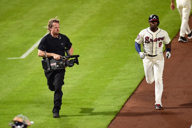 Any time there is a dead ball – a home run is hit, a ball goes out of play – I have access inside foul territory. When a home run is hit, I go meet the hitter at third base and run them down the line and bring them into the dugout. We’ve been really careful over the years to work with each individual team as well as Major League Baseball to make it as seamless as possible and to stay out of the way while giving the fan something at home they can’t normally see.
