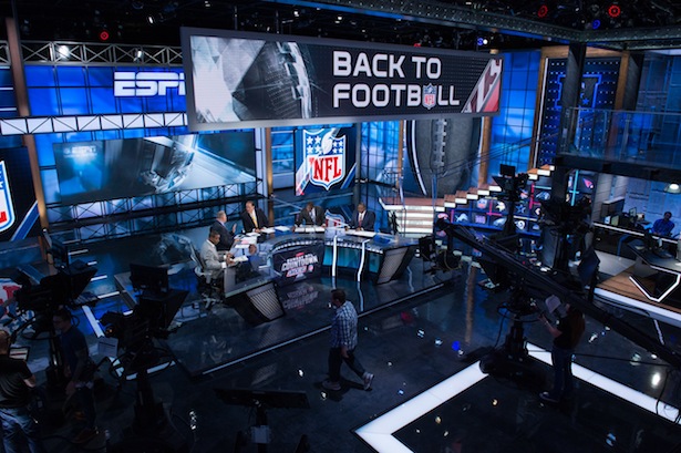 Complete with two floors, three main sets and six mini-set possibilities, the 9,000-square-foot space in ESPN’s Digital Center 2 will serve as the new location for all of ESPN’s NFL studio shows, including tonight’s edition of Monday Night Countdown (5 p.m. ET, ESPN).