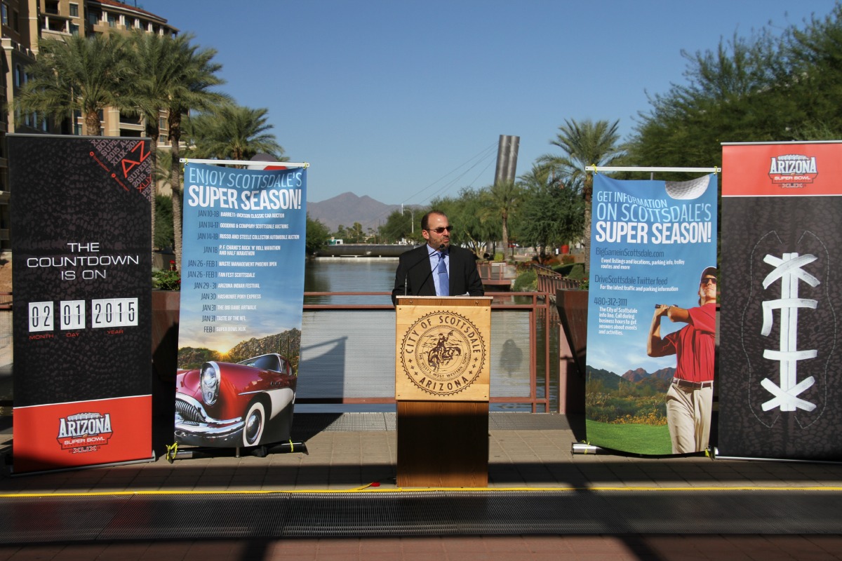 Tuesday at a media event in Scottsdale, Ariz., ESPN unveiled its site plans for Super Bowl XLIX before local, civic and business leaders (see photos above).