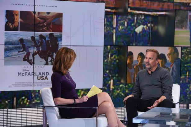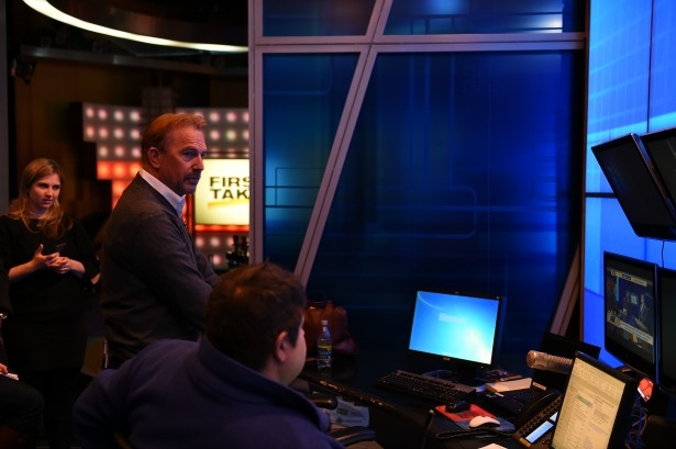 Kevin Costner at ESPN Kevin Costner (l) and featured commentator Stephen A. Smith on the set of First Take. (Joe Faraoni/ESPN Images) Kevin Costner behind the scenes on the First Take set. (Joe Faraoni/ESPN Images) Anchor Hannah Storm (l) and Kevin Costner on the set of SportsCenter. (Joe Faraoni/ESPN Images) (L-R) Hosts Mike Greenberg, Mike Golic and Kevin Costner on the set of Mike & Mike. (Joe Faraoni/ESPN Images) Related Articles Local teachers, childcare providers receive COVID-19 vaccinations at ESPN First Take travels to Vegas to preview Mayweather-McGregor; special airs tonight from Vegas Deja vu: Sutcliffe throws out first pitch at Camden Yards Inside look at ESPN’s coverage of the 71st Little League World Series from Williamsport
