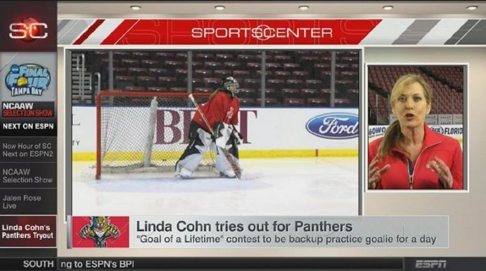“I didn’t think my skills would get me there, but what if the Florida Panthers thought they’d get extra publicity by having a SportsCenter anchor be one of the two finalists?” Linda Cohn said after competing in Monday’s “Goal of a Lifetime” contest to be the team’s backup practice goalie for a day.
