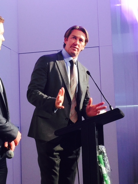 Famous former Australian bowler Glenn McGrath predicts an Australian win at a luncheon at MCG during the Cricket World Cup final mid innings.