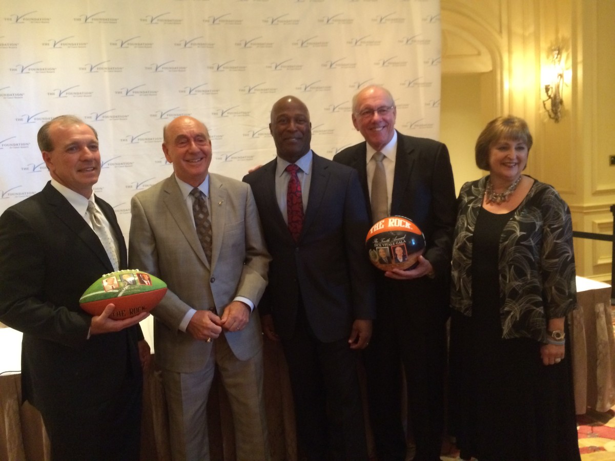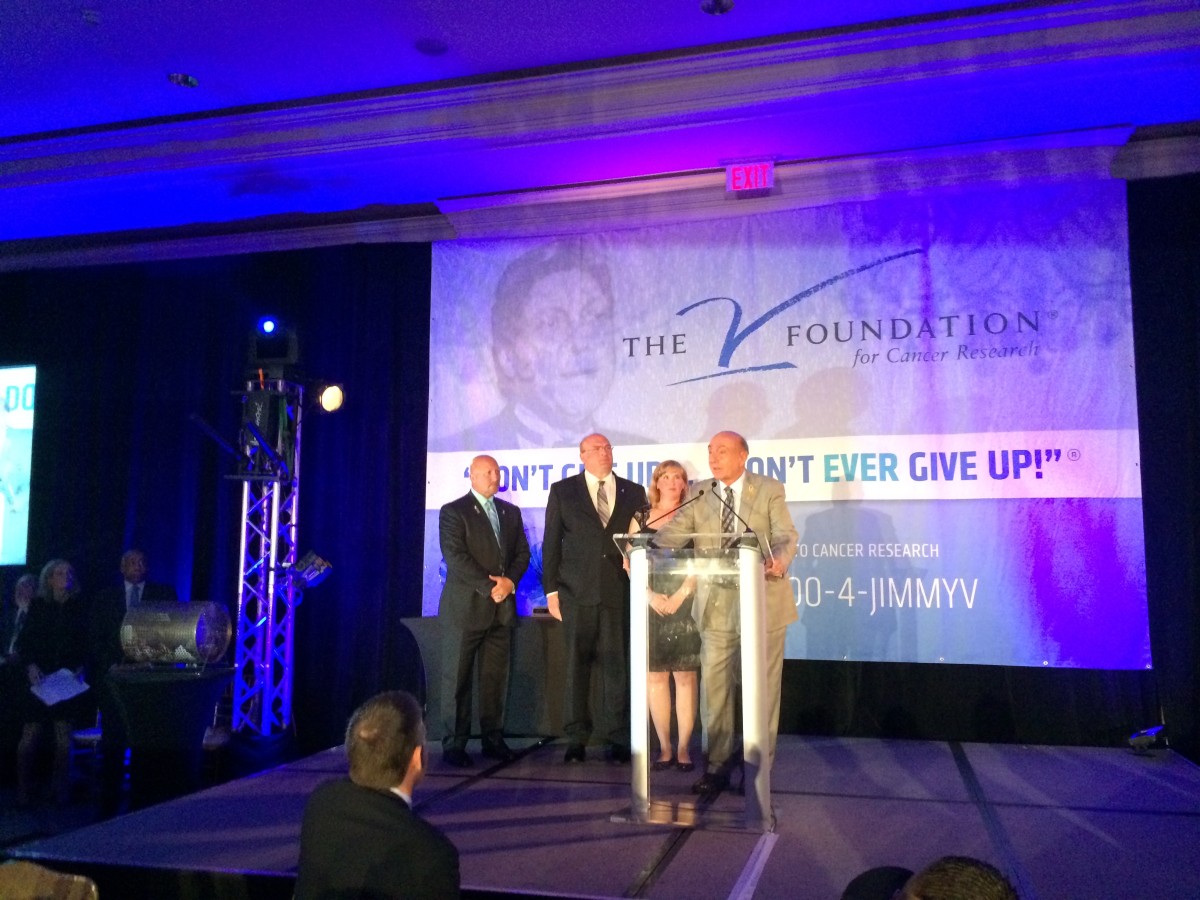 Honorees Jim Boeheim, Jimbo Fisher and Lovie Smith spoke of their personal connections to cancer, and the event paid tribute to late ESPN commentator Stuart Scott. Among those in attendance were the Cincinnati Bengals’ Devon Still, whose young daughter is a cancer survivor, and Vitale’s “All Courageous Team” – a group of young cancer survivors.