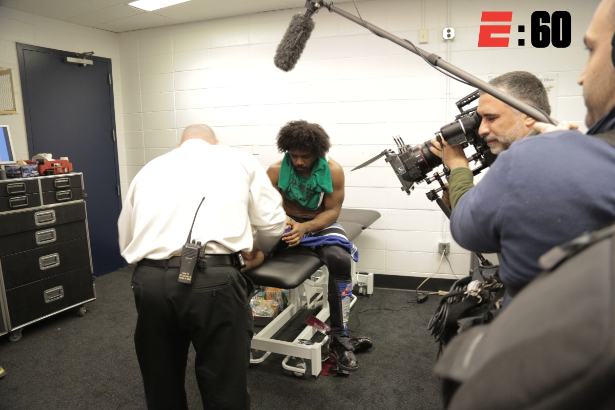 The initial concept was to do a 10-15 minute feature, although once I started filming with WWE, their talent development system, NXT and Levesque, it was evident that the content we captured was far more than we anticipated. We filmed with five NXT wrestlers: Xavier Woods, Corey Graves, Adam Rose, Tyler Breeze and Colin Cassady. Austin Watson, aka Xavier Woods, was my first choice. He was charismatic, intelligent and we were left with a strong impression he would advance. We wanted performers at different ends of the spectrum as far as their WWE status and worked with them to select performers that fit the criteria. Although we were only able to include three stories in the show, we also produced two separate digital features chronicling two more journeys, one of which will run (on ESPN.com) directly following tonight’s show.