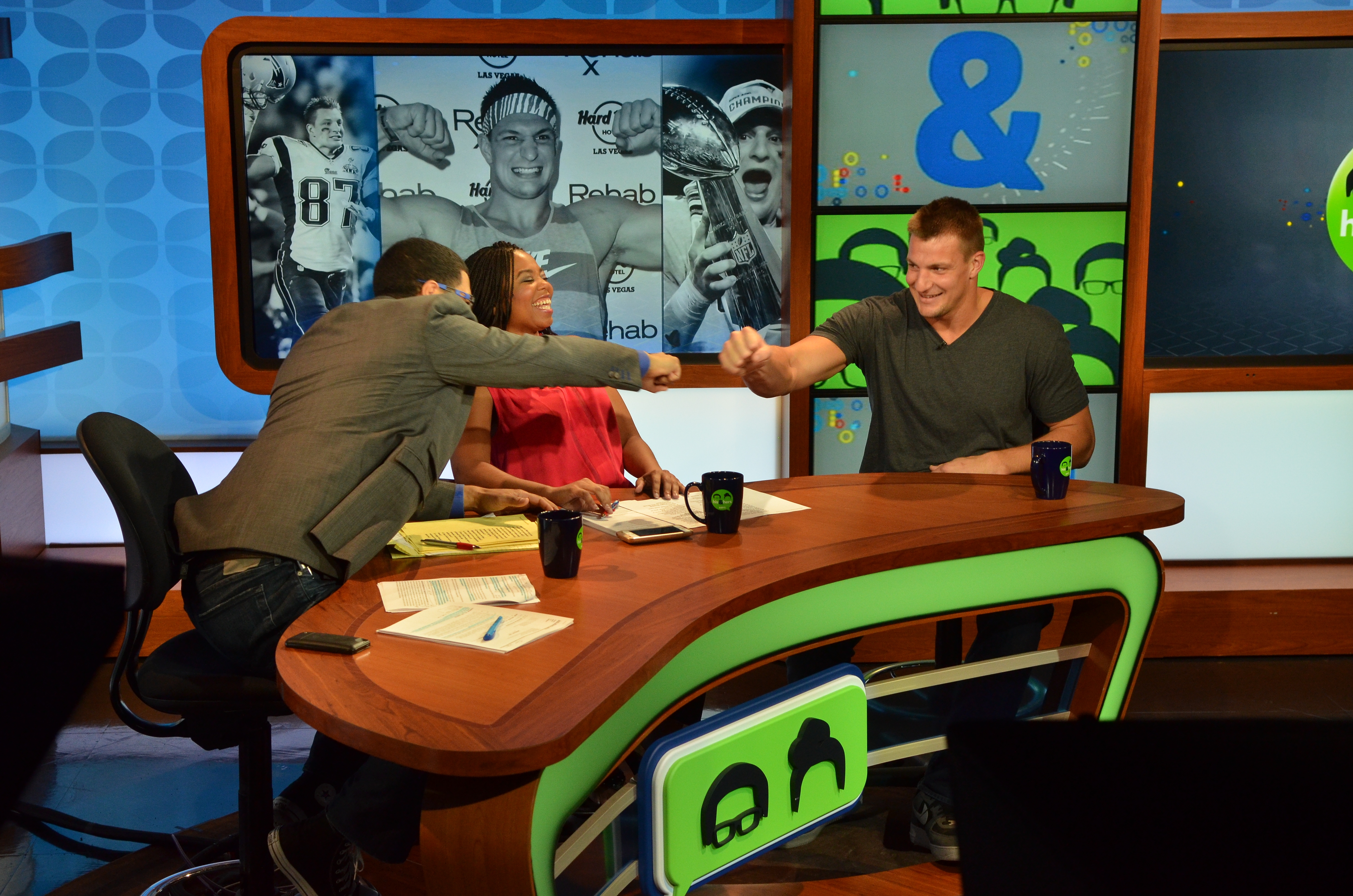 Rob Gronkowski and Odell Beckham Jr. (foreground) visited a morning edition of SportsCenter today. They will appear together again on the 6 p.m. ET edition.