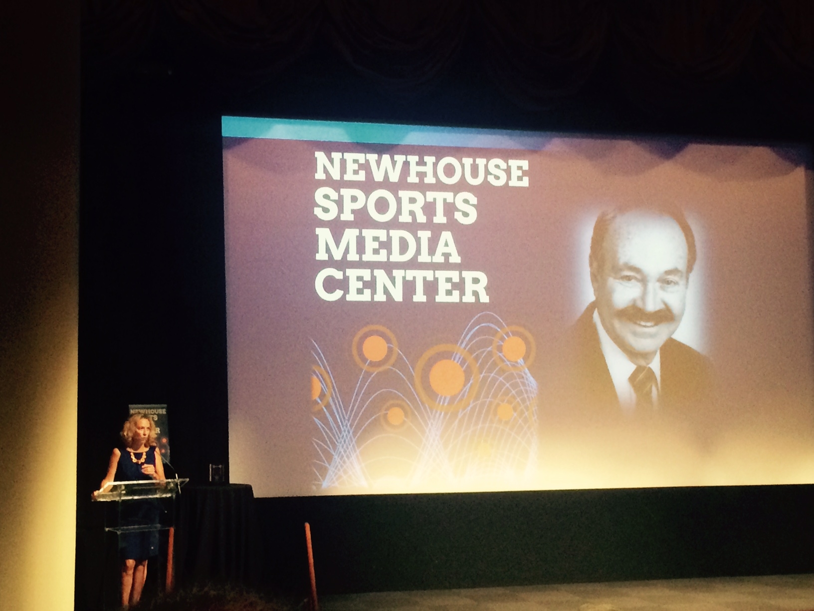 Having earned her graduate degree from Newhouse in 1990, Mowins was surrounded by family, friends and co-workers, current and past, at Time Warner headquarters in New York City on Wednesday. Fellow alumnus and broadcasting veteran Bob Costas, the 2013 recipient of the Marty Glickman Award, presented Mowins, while ESPN teammates Doris Burke and Holly Rowe, along with her first boss John Eves, from WXHC-FM Radio in Homer, N.Y., offered their own heartfelt toasts during the hour-long presentation.