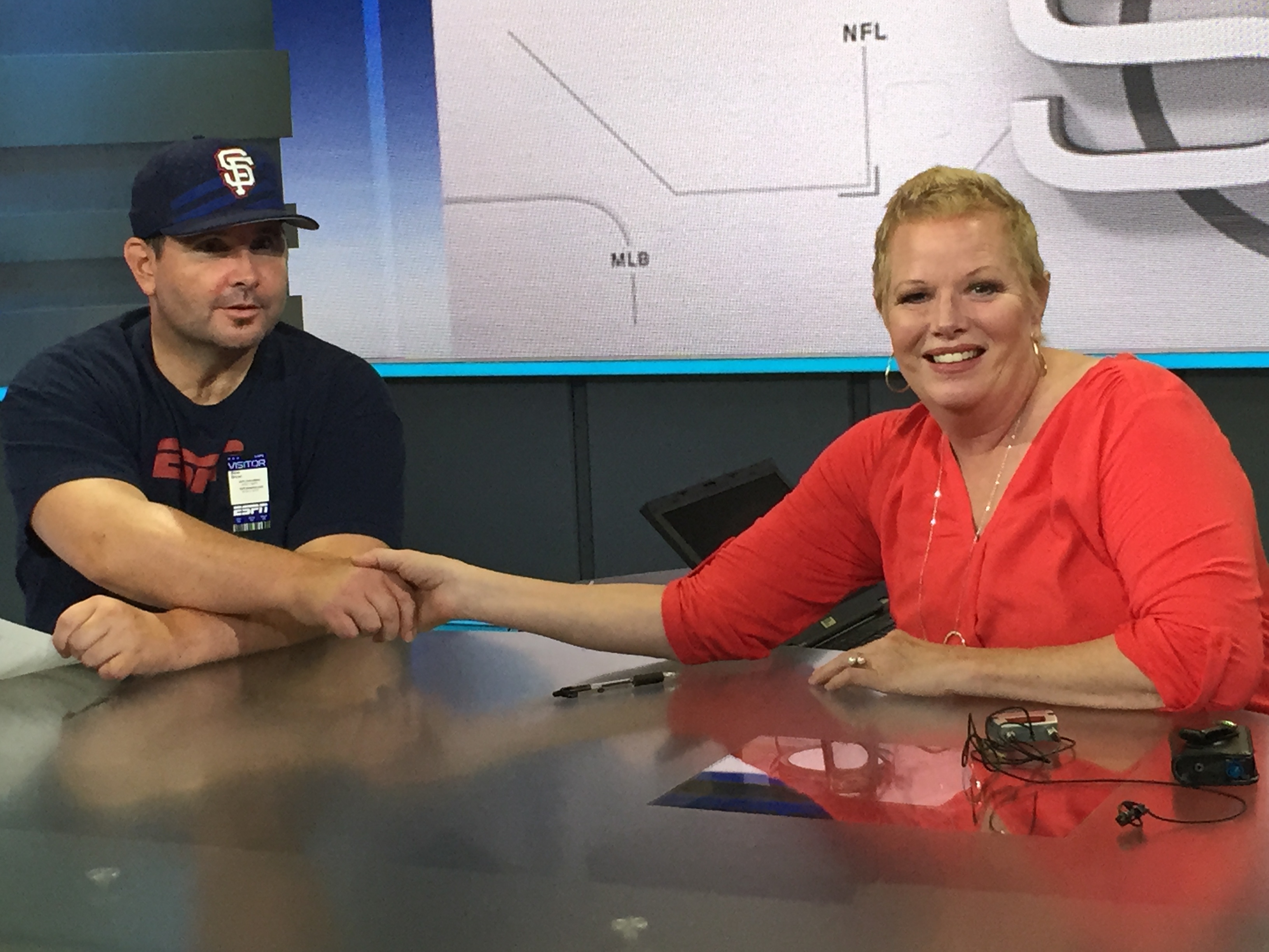 “Never in a million years did I think I would be anchoring SportsCenter,” he said and cracked a huge smile. When I sat down in the other chair he said, “Look at us, we’re partners!”