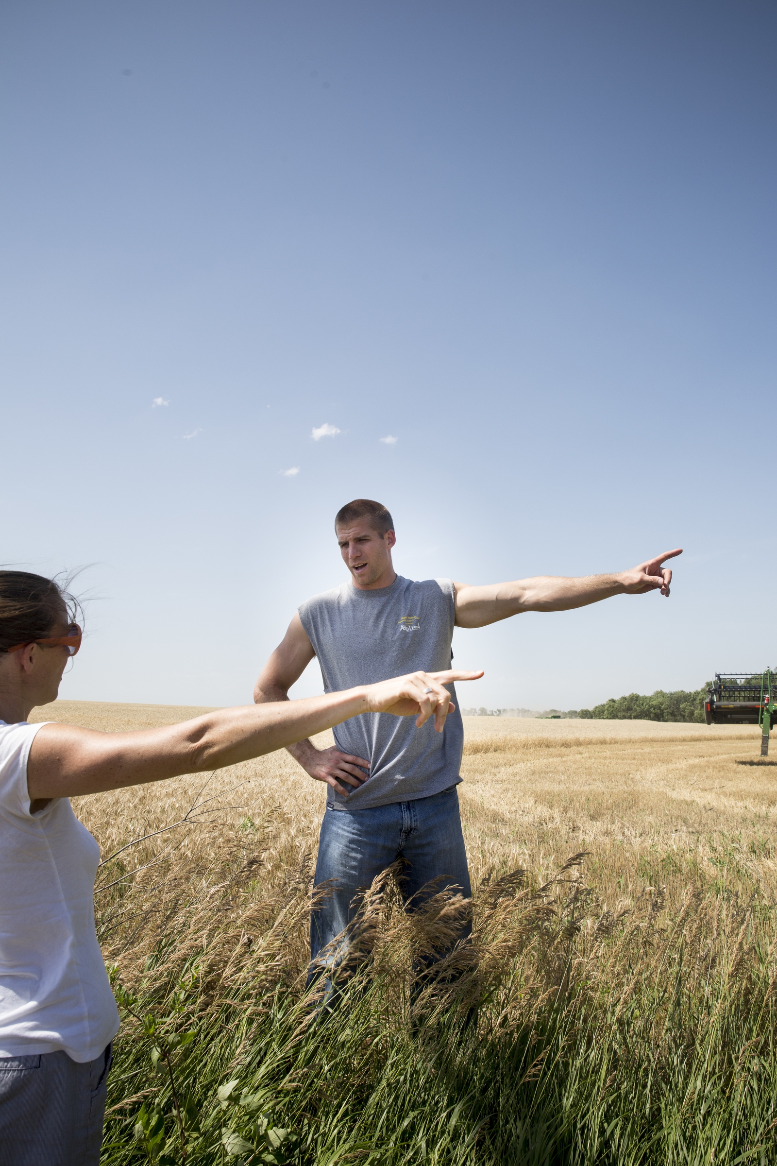 Jordy, his brother and the crew drove the combines for about eight hours that day. I rode several loops around the field with Jordy and also rode with his brother. Riding in the combine was actually fun; the perspective is awesome and the sheer volume of the wheat you’re cutting is pretty cool. Jordy was so laid-back; it’s always nice to talk to athletes outside of the locker rooms and clubhouses.