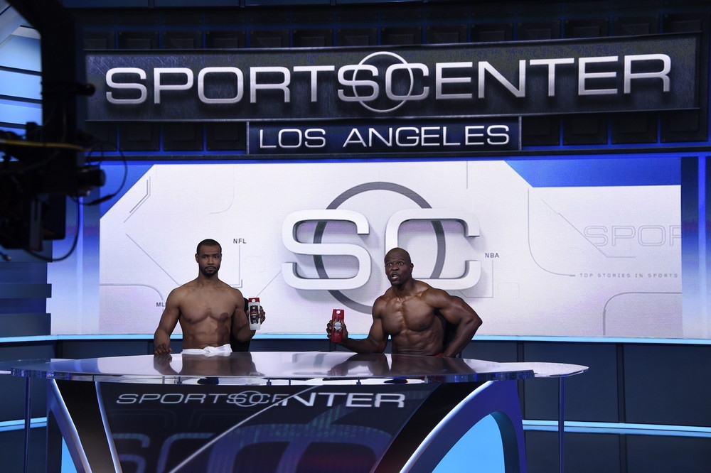 If you watched last night’s 6 p.m. edition of SportsCenter with Lindsay Czarniak, you probably saw Old Spice’s well-known spokespeople, actors Terry Crews and Isaiah Mustafa, sitting on the show’s iconic desk shirtless as they took over commercial time.