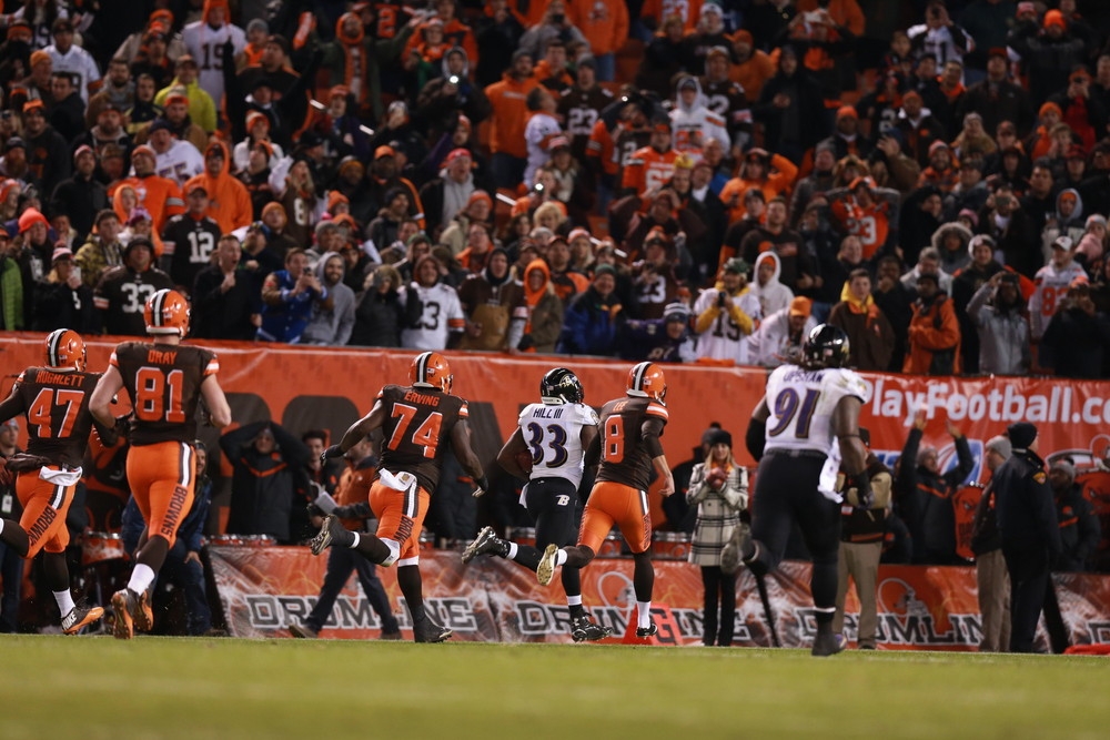 – Week 12: Baltimore Ravens defensive back Will Hill’s return of a blocked field goal at the buzzer to beat the Cleveland Browns (see photo above)