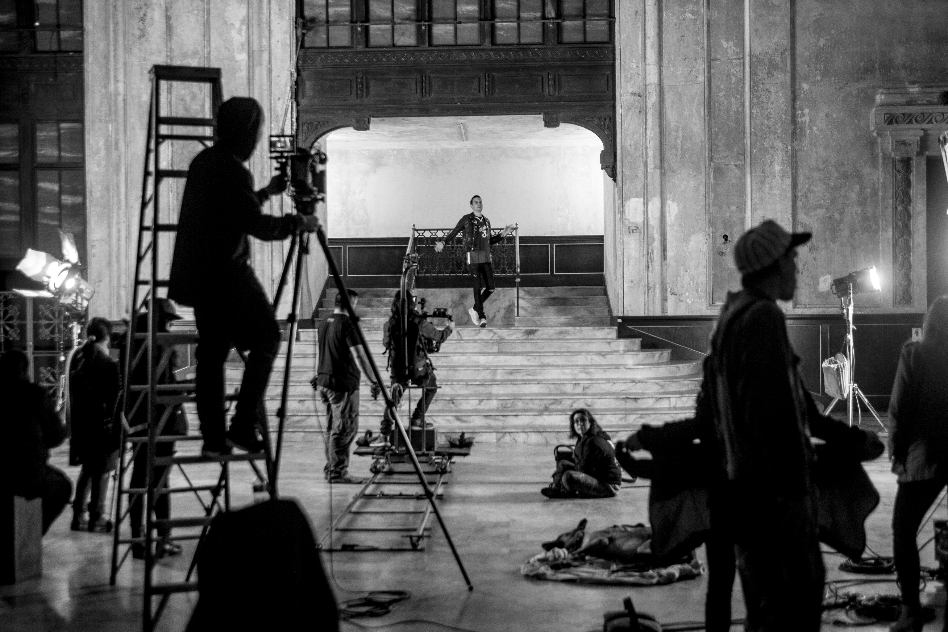 Behind-the-scenes photos from the shoot are above; an excerpt from the video is at the bottom of the post.