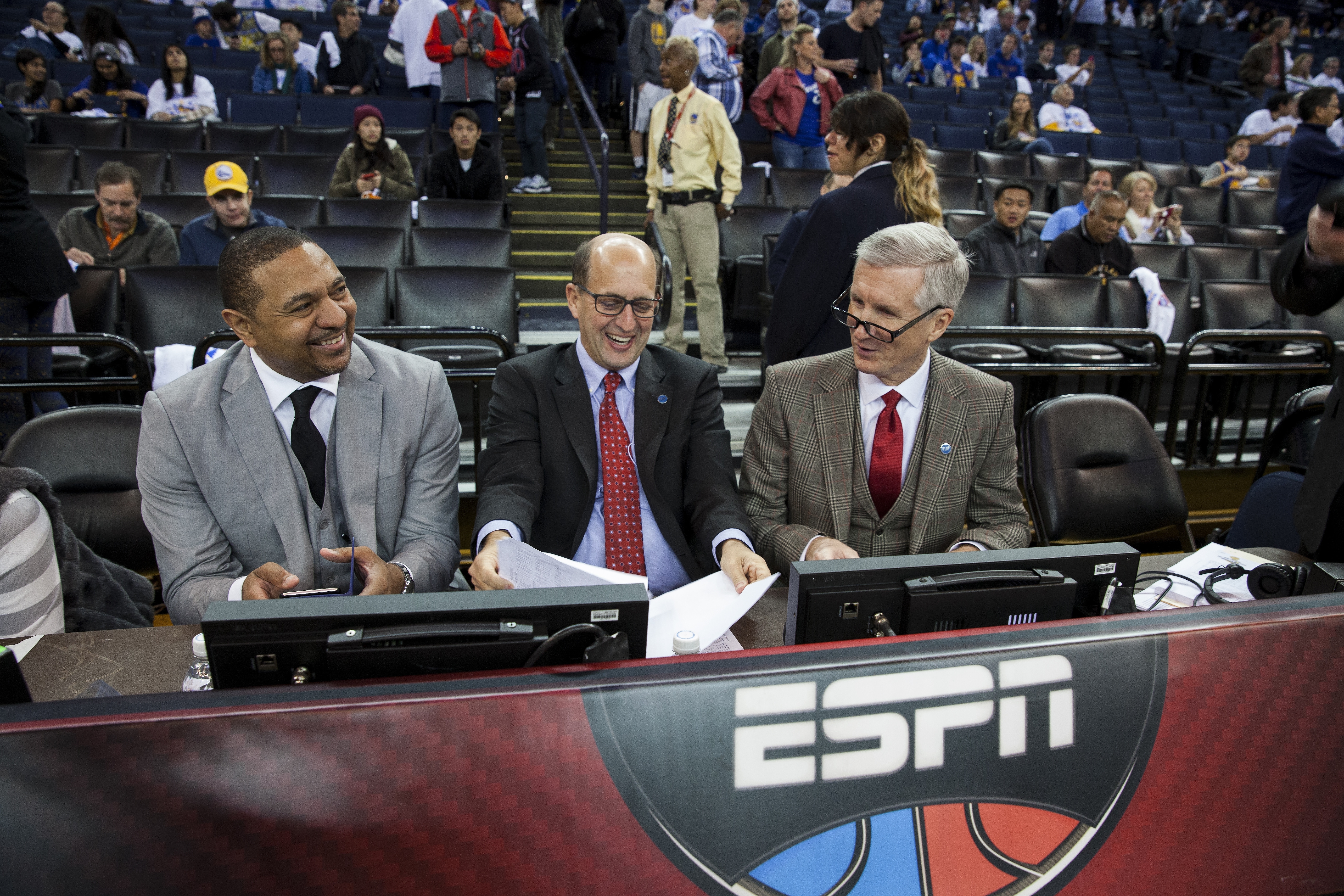 Mobile LED video board: ESPN will usher a mobile LED screen on to the court to serve as the backdrop for the opening segment, featuring Mike Breen, Jeff Van Gundy and Mark Jackson.
