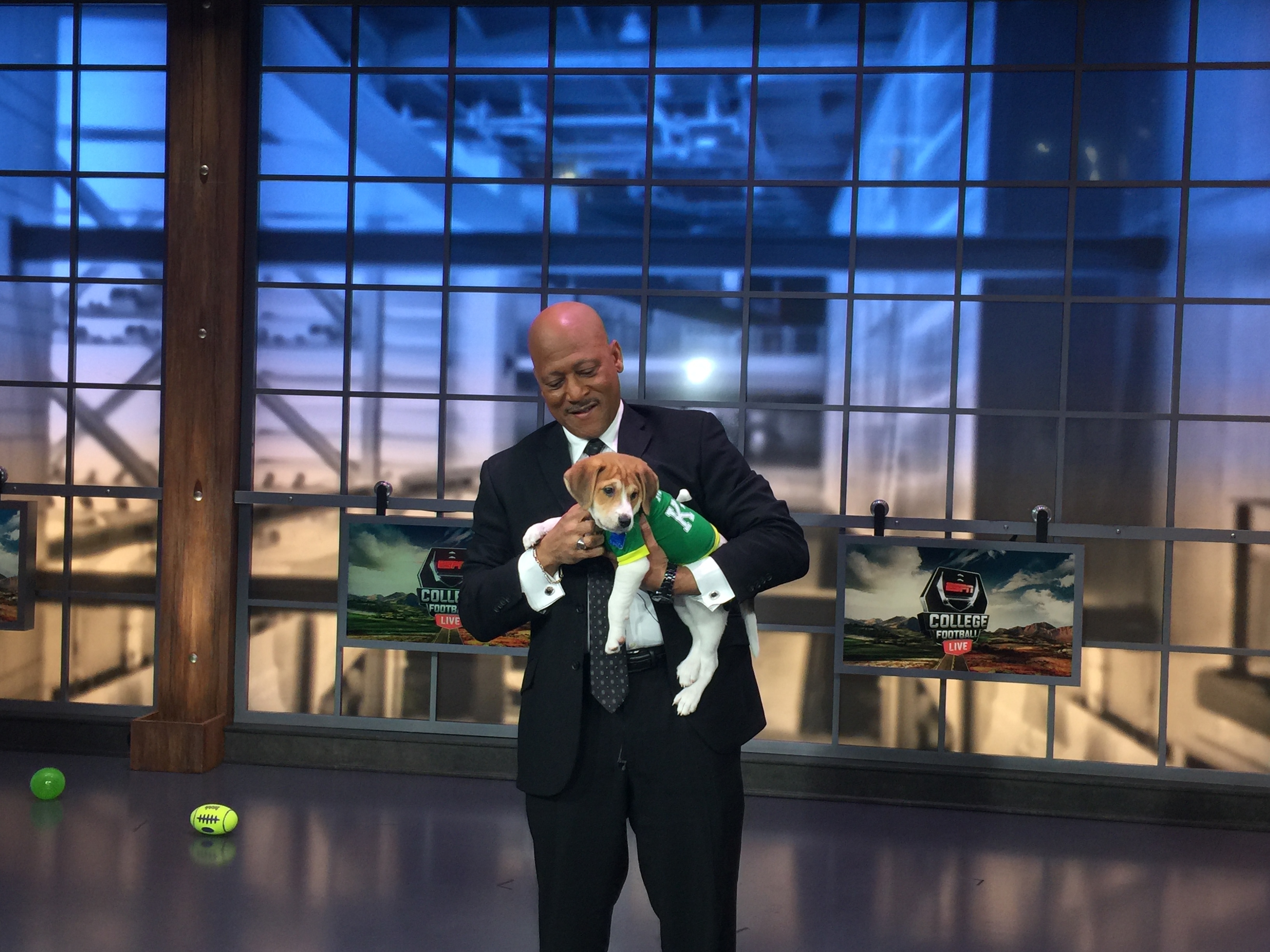 Had way too much fun on #CFBLIVE today with @TomLuginbill @RodGilmore and the adorable puppies! pic.twitter.com/ECVAV3IjCN