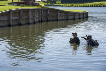 For the feature shoot, Barrie and diver Scott Evans, who works for a company hired by TPC Sawgrass to recover lost golf balls, were equipped with GoPro cameras on their masks and wrists as well as diving masks wired for audio.
