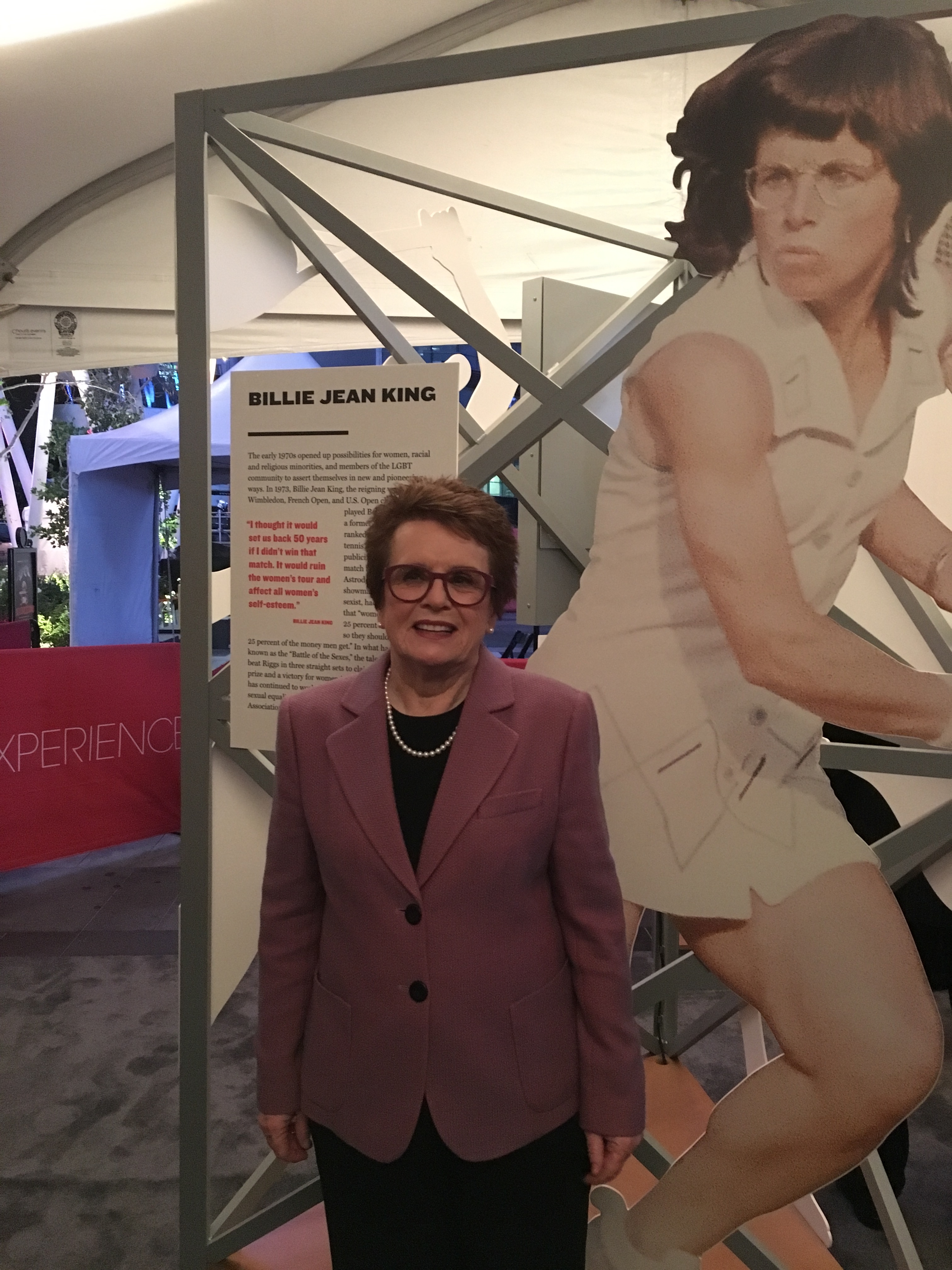 To honor these athletes and to enhance the dialogue around this important topic, ESPN Corporate Citizenship has worked with the Center for Civil and Human Rights to create a traveling exhibit that showcases the history of civil and human rights in sports through stories of athletes past and present. Coined “Breaking Barriers: Sports for Change,” the exhibit explores how sports has influenced issues from racism to immigration to equal rights for women, people with disabilities and LGBT athletes.