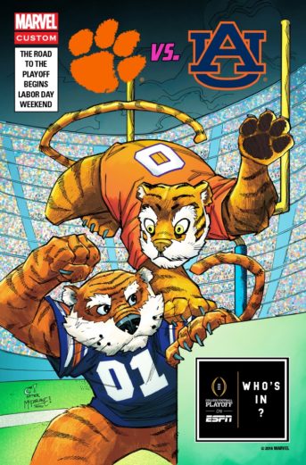 ESPN worked with Marvel to remake some classic comic covers in the spirit of six key matchups, “Marvelizing” the mascots of the 12 teams playing. Marvel fans and college Football fans are some of the most rabid out there and making covers that combine that fandom has been incredibly well received.