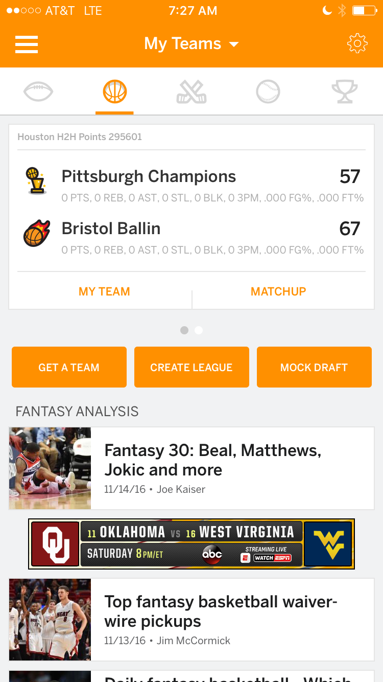 The groundwork for our great start in fantasy basketball started when we launched the new ESPN Fantasy App in August. The new app combined football, basketball, baseball, and hockey into a single app. We knew the majority of fans who played ESPN fantasy basketball also played football, so by combining the apps we were making their lives a lot easier. We also knew that millions of our fantasy football players followed the NBA, so making fantasy basketball available to these fans alongside their football experience made it easy for them to create or join leagues and play fantasy basketball for the first time. The result is we have set a record for players, and we’re still getting thousands of signups each day. We won’t close sign-ups until after the new year.