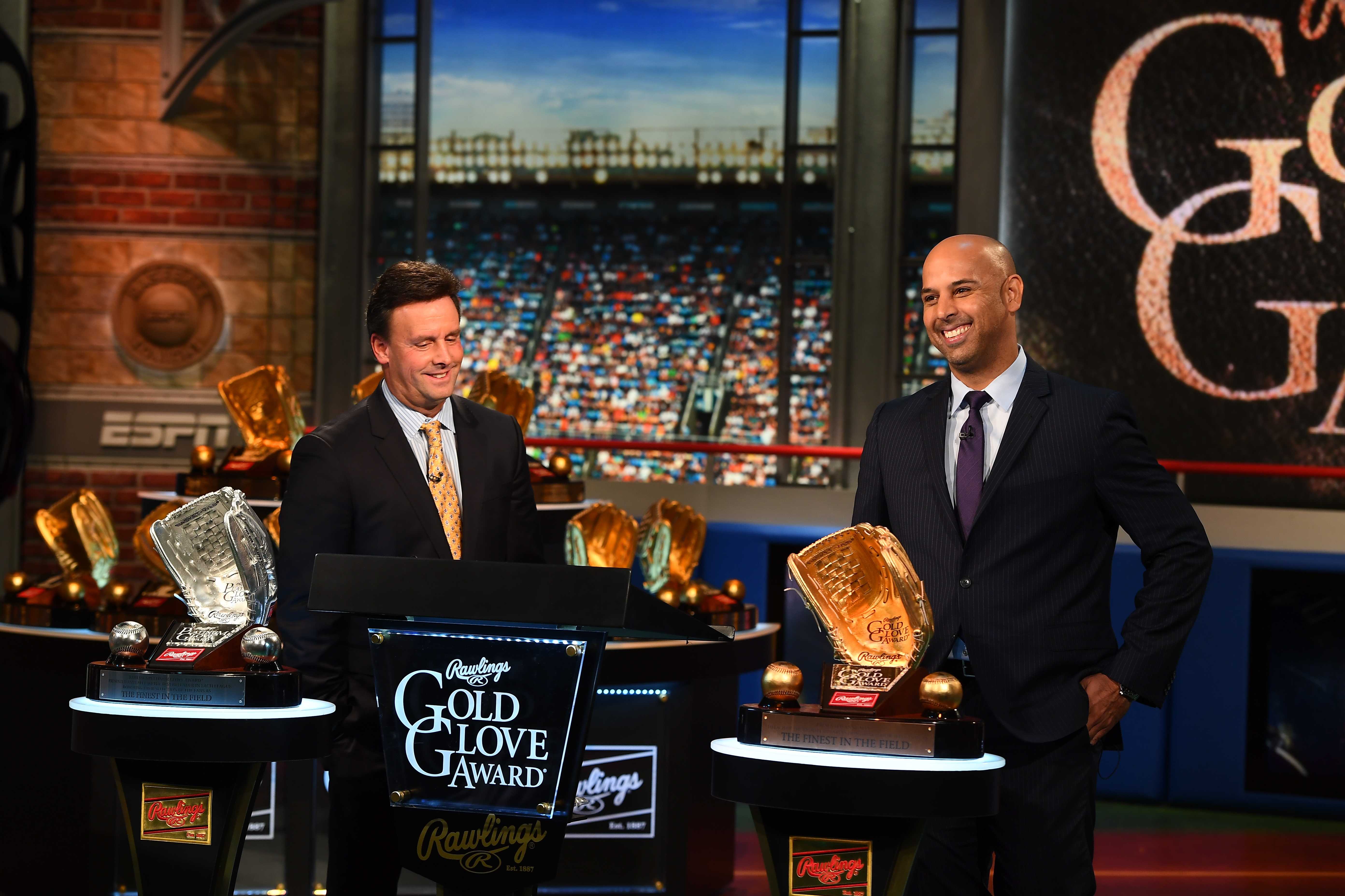 Host Karl Ravech was joined by analysts Doug Glanville and Alex Cora in the Baseball Tonight studio. This marked the 59th year of the iconic award that is presented annually to the top defensive players from both the American League and National League at all nine positions.