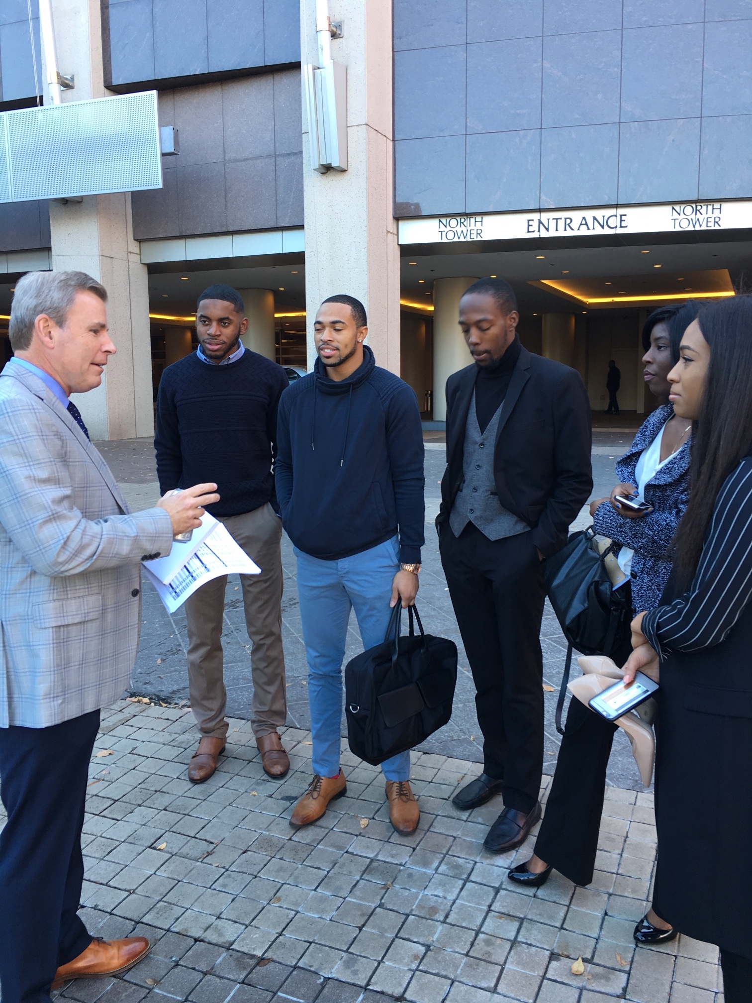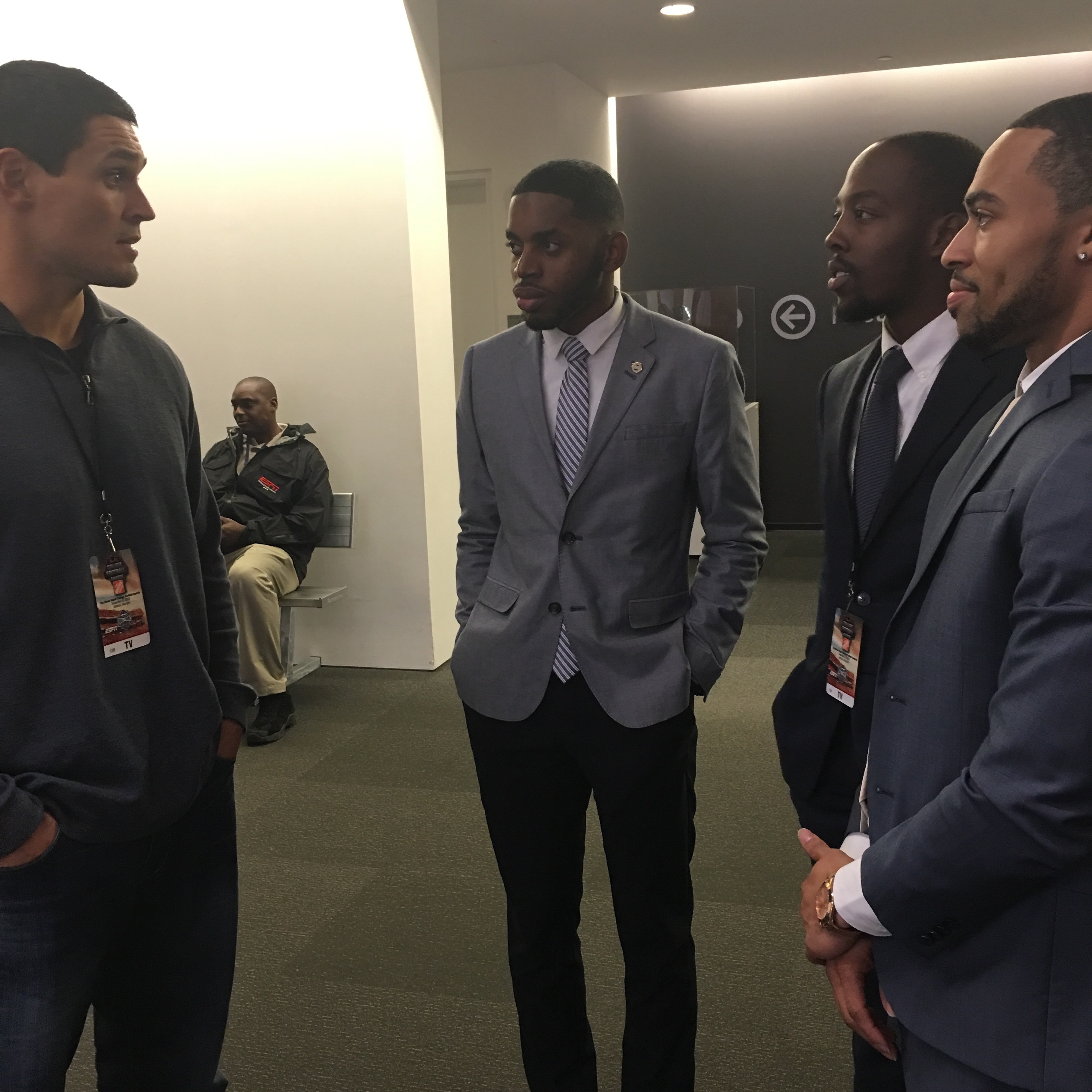 Using the show as a live learning lab, the program’s inaugural student class (selected by their professors): Henry Clopton (Sr., Georgia State), Jordan Frank (Jr., Clark Atlanta), Darveon Hyde (Jr., Clark Atlanta), Autumn Johnson (Jr., Kennesaw State) and Racquel Yeedia (Jr., Georgia State), heard from ESPN reporters, analysts and producers; observed media events and press conferences; watched rehearsals; got familiar with the show rundown and attended a 30 for 30 film screening for media.