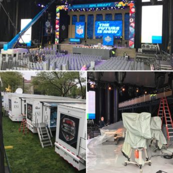 ESPN’s main desk at the 2017 NFL Draft Theatre at the Philadelphia Museum of Art.