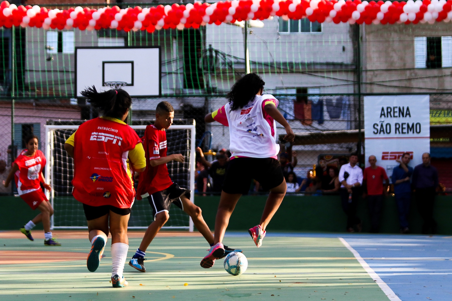 ESPN Brazil commentators Juliana Veiga and Gustavo Hofman joined nearly 400 residents of the São Remo community in São Paulo, Brazil on June 22 for the official opening of their new court space, Arena São Remo.