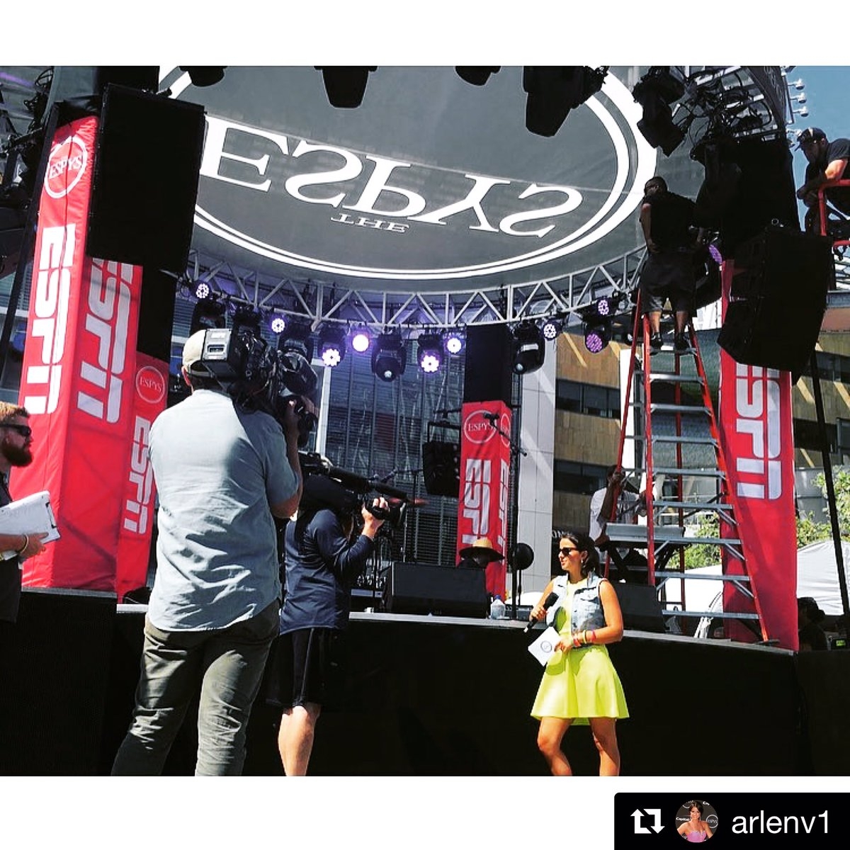 Wednesday in Los Angeles, Arlen reports from the ESPYS Experience set outside the Microsoft Theatre that is home to The 25TH ESPYS (Wednesday, 8 p.m. ET, ABC). As part of The 2017 ESPYS Red Carpet Live Show, Arlen will introduce performances by rock band OAR and musician Jorge Blanco and interview X Games athletes.