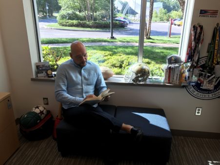 I love to read, so it’s easy. I try to fit it in during travel time; audio books in the car and text books during a plane/train ride.