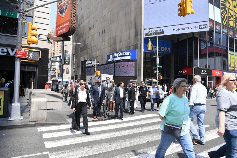 When the Upfront ended, the MNF crew left the theatre, crossing 7th Avenue in the heart of Times Square, to walk over to the Good Morning America studio where our photo shoot was set up. Of all the photos I would take on this day, this is the one I REALLY wanted.