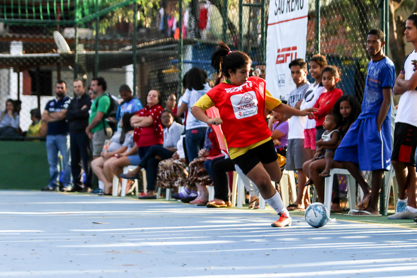 In the video above, ESPN employees were on hand to cut the ribbon at the official dedication of a multifunctional sports space in Bangalore, India in 2017.