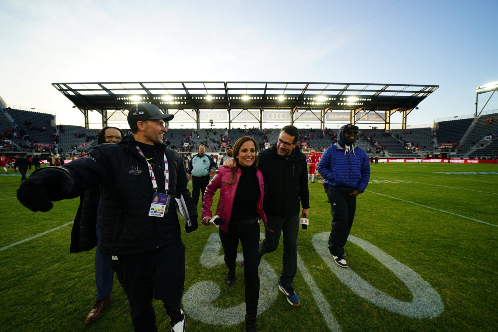 After his Week 1 XFL experience, Tom Luginbill knows his way around Audi Field, home of the XFL’s DC Defenders. Luginbill: “I’ve been a field analyst for seven years and I’m used to moving around a lot and at a pretty fast pace in my normal role, but I’ve never been so physically exhausted following a broadcast in my entire life. I looked at my Apple Watch and I was over 14,000 steps – and we weren’t even done with the game yet. The other thing that is actually kind of funny – I literally think I might’ve slightly pulled my left hamstring. As a scholarship athlete, I’d never pulled a muscle in my life.”