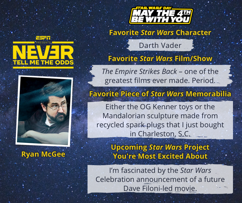 On April 26, a trio of popular voices who are lifelong Star Wars fans, commentators Ryan McGee, Arda Öcal and Clinton Yates, debuted a new podcast called ESPN Presents: Never Tell Me The Odds.