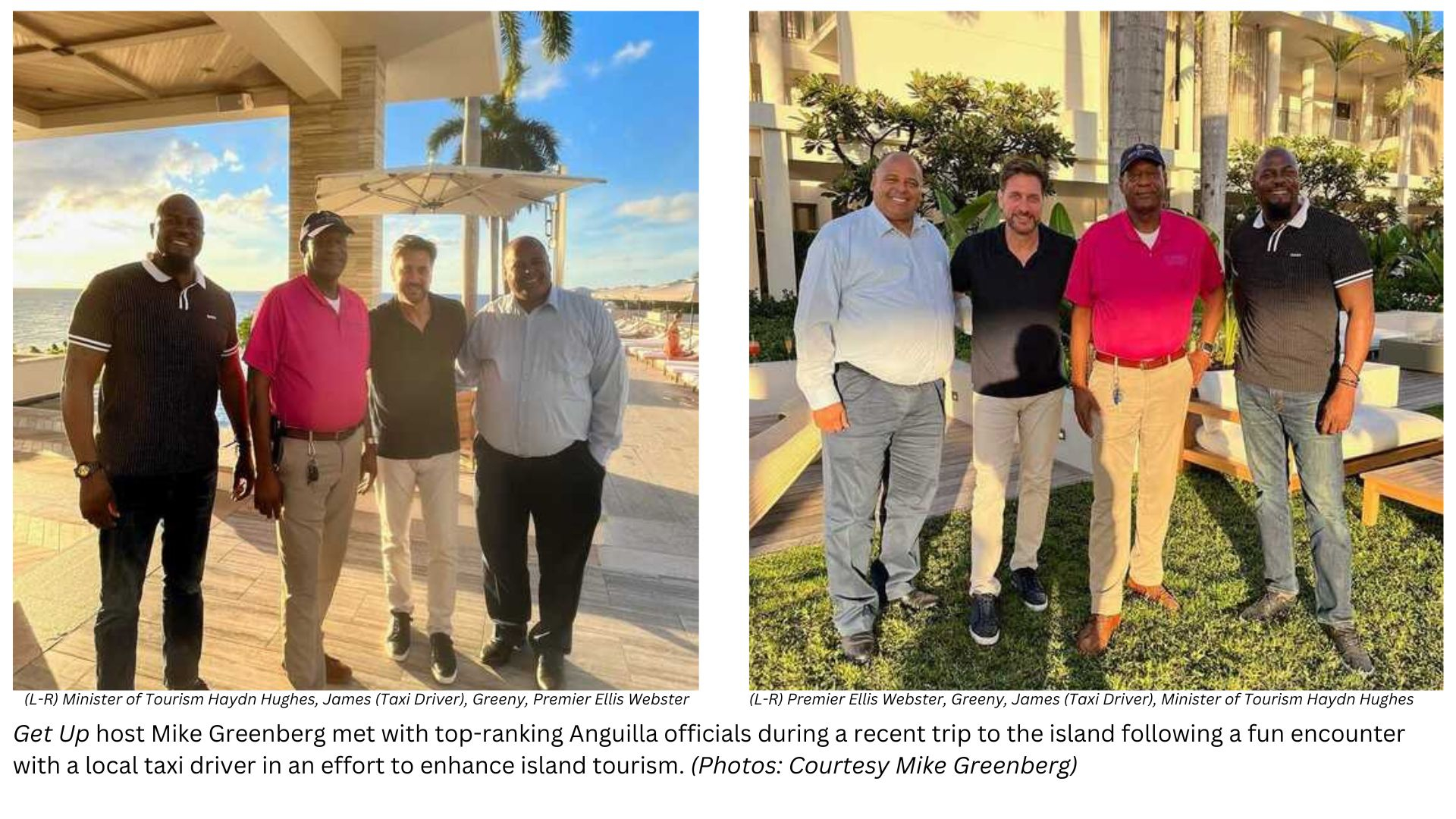 First, it was locals coming up and wanting to take photos. Then, it reached top-ranking Anguilla officials, with Greeny and James meeting with Premier Ellis Webster and Minister of Tourism Haydn Hughes about ways to grow tourism on the island. Wait what?