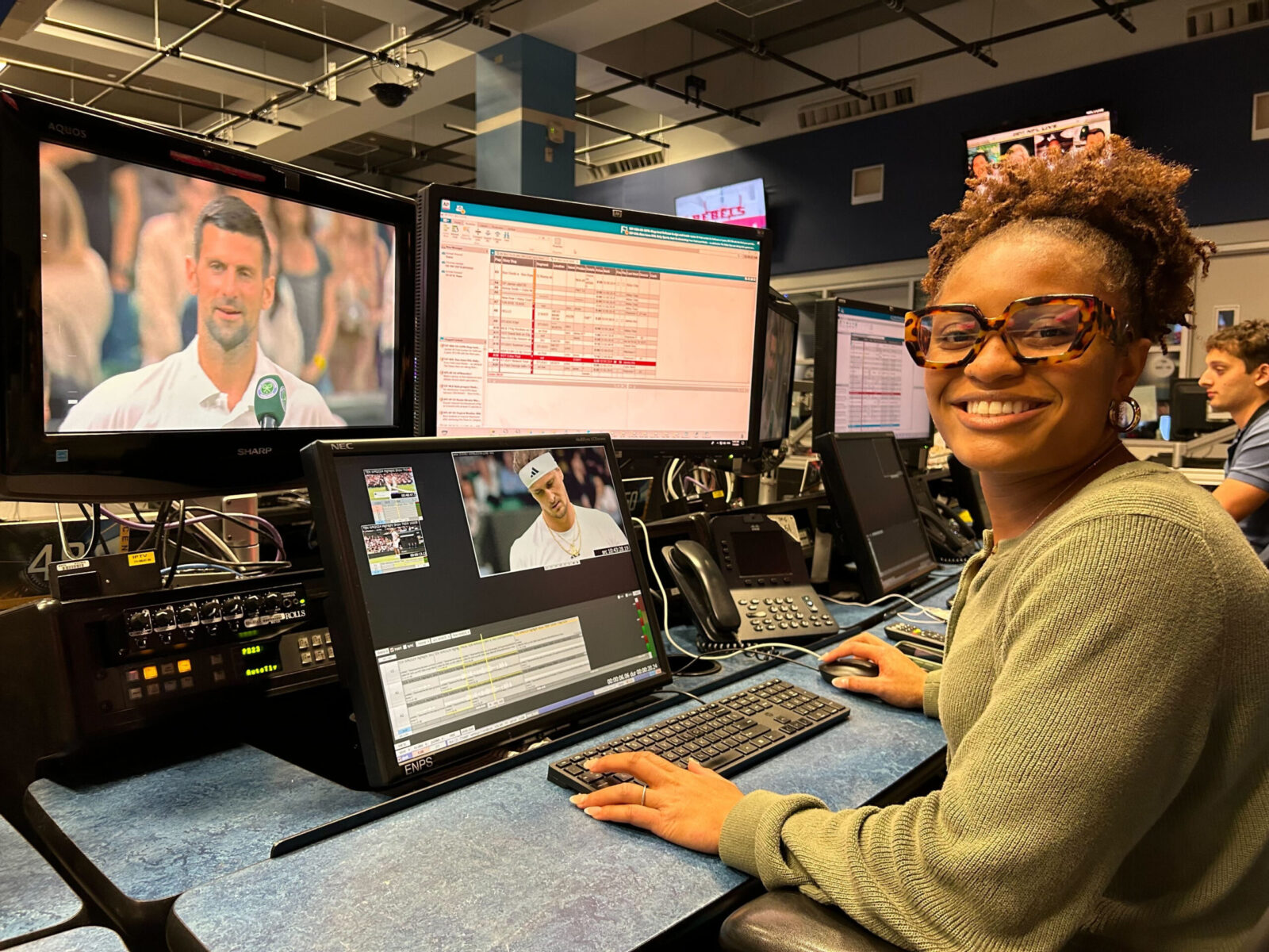 Her duties vary daily. She’s also worked on transcribing post-game interviews and putting together sports highlights for ABC News affiliates (The Walt Disney Company owns ESPN and ABC).