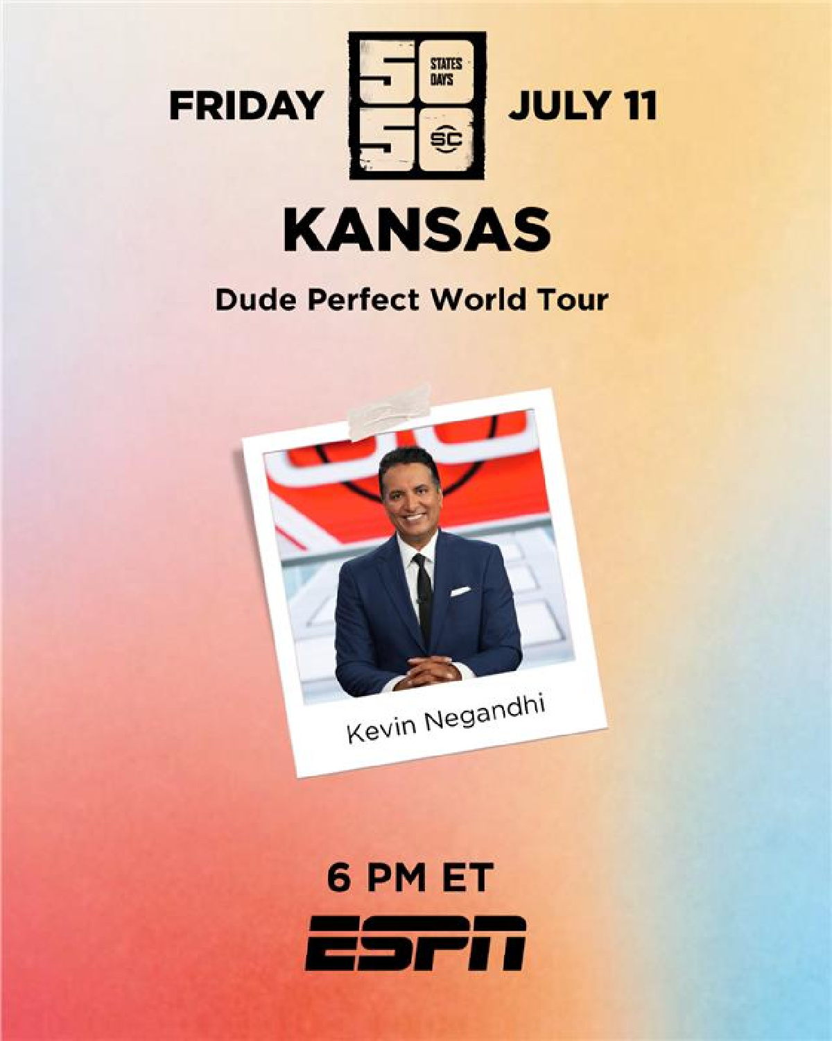 As SportsCenter’s “50 States in 50 Days” tour rolls through Kansas, the 6 p.m. ET Friday, July 11 show heads to Wichita with a stop on the Dude Perfect World Tour.